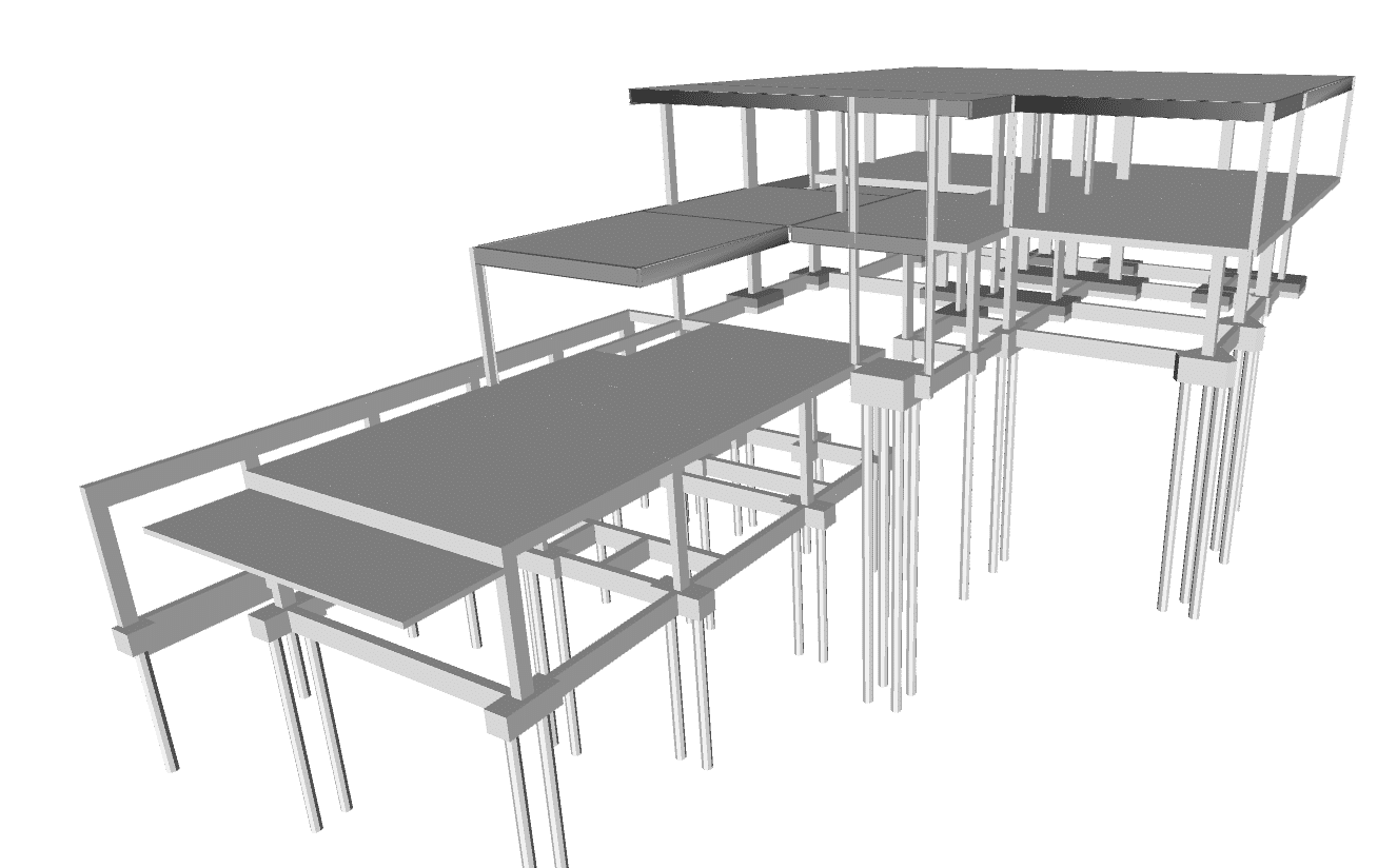 Com vão e balanços significativos e diversos elementos arquitetônicos que se mesclam com a estrutura, a Casa R & M trouxe diversos desafios para todos os envolvidos no processo.